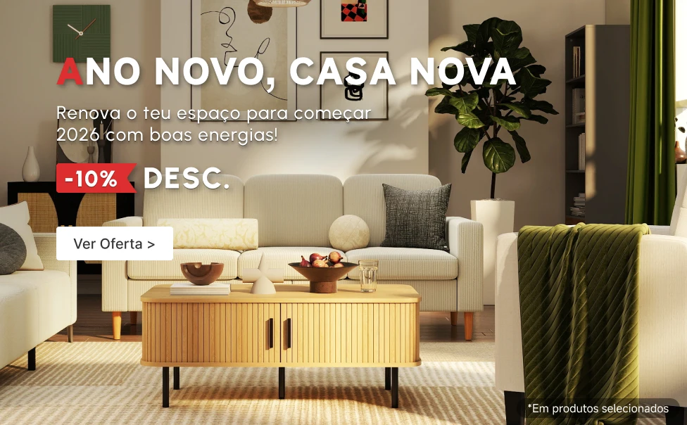 Desfruta da sensação acolhedora do outono numa sala cheia de harmonia. Tons bege e amarelos que iluminam o espaço, um sofá confortável, tapete macio e mesa de centro que convidam a relaxar. O candeeiro de pé, o cobre-radiador e a decoração completam um ambiente aconchegante, perfeito para esta estação.