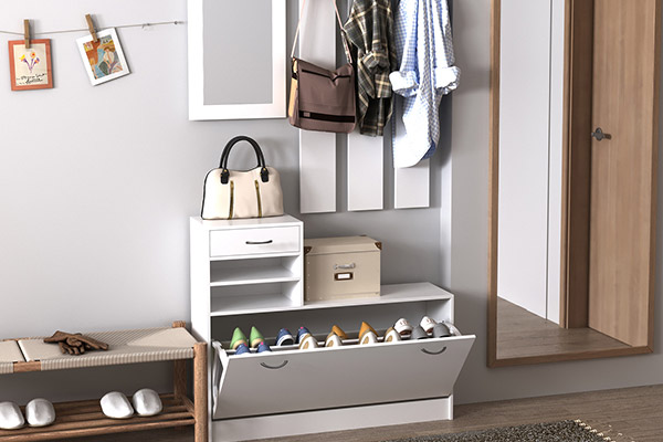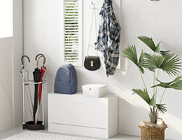 Se não tem muito espaço e precisa de mais espaço de arrumação, experimente o nosso "sapateiro multifuncional". Mantenha tudo o que você precisa arrumado, fora do caminho, mas à mão. Além disso, não perca espaço na parede também, pendure mais coisas e economize mais espaço! Ir para móveis de corredor >Traga armazenamento extra