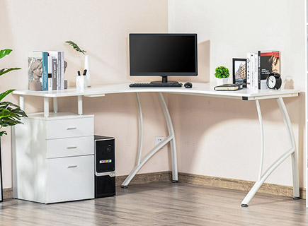 Adicionando uma área de mesa a uma pequena sala de estar que já tem muitos móveis? Uma mesa de computador ajustável em forma de L ou uma mesa de computador de canto pode caber facilmente no canto de uma pequena sala de estar. Também temos vários armários de armazenamento e organizadores inteligentes e compactos para maximizar seu espaço limitado.