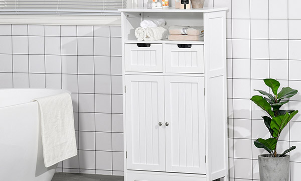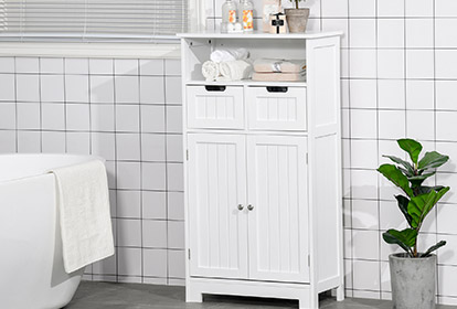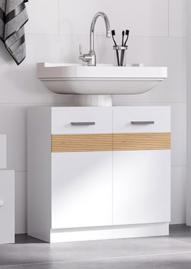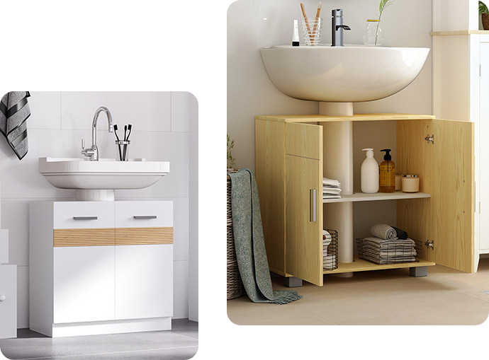 Adicionar um armário de banheiro é uma maneira prática de manter os materiais de limpeza, toalhas e outras necessidades organizadas, mas fora do caminho. Nossos designs acessíveis à prova d'água ajudam você a manter seus acessórios armazenados em alta e secos. Móveis para lavatórios pousar >Não desperdice nem um espaço