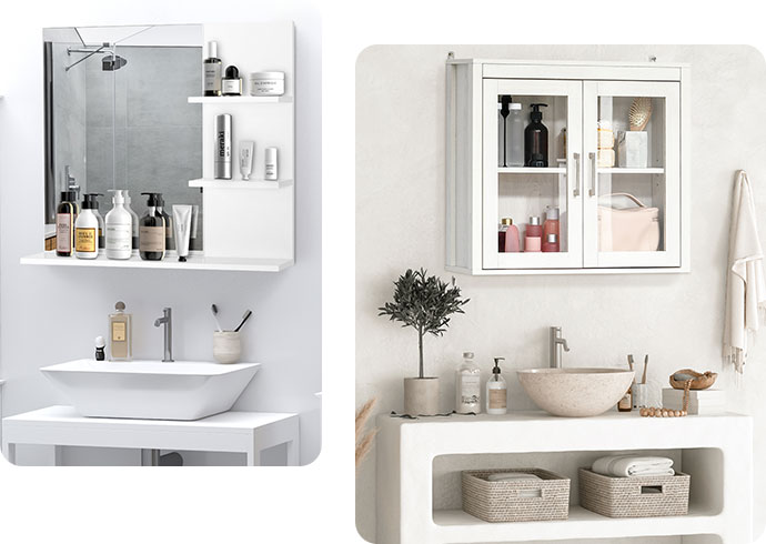 Armários de parede e espelhos iluminados para ampliar seu banheiroComo seu banheiro geralmente é o menor cômodo, você precisa mazimizar o espaço sem gastar muito. Nossos armários de parede bem projetados têm amplo espaço para itens essenciais do banheiro, como produtos de cuidados diários da pele, escovas de dentes, etc., economizando espaço precioso. Nossos armários de banheiro acessíveis têm espelhos que ajudam a passar rapidamente pela sua rotina matinal.