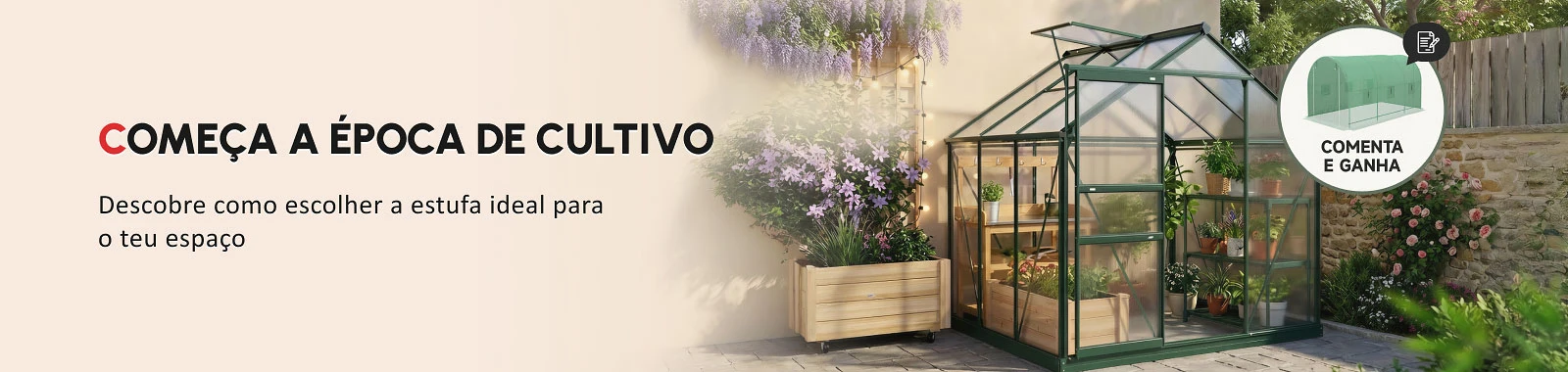 Perfeita para jardins e pátios grandes, oferece espaço e altura para trabalhar confortavelmente e cultivar em maior escala. Ideal se queres começar as plantações de primavera mais cedo.