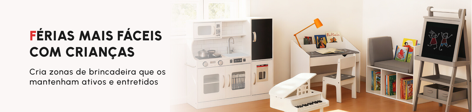 Uma cozinha incentiva os mais pequenos a inventar receitas, imitar os adultos e partilhar momentos de jogo simbólico que estimulam a criatividade e a autonomia.