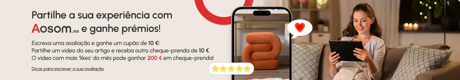 - Decoração ou exposição: Partilhe como o produto fica na sua casa ou no seu espaço, mostrando ideias de decoração.