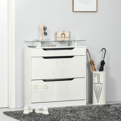 Uma das coisas que às vezes não sabemos onde armazenar são os sapatos, é por isso que na Aosom.pt temos armários de sapatos de tipos muito diferentes. Você encontrará móveis baixos, compactos e perfeitos, como bancos de sapatos que, além de oferecer um local para guardar seus sapatos, proporcionam uma superfície onde você pode se sentar para calçar e tirar os sapatos com conforto. Outro tipo de sapateira é aquele com portas dobráveis. Eles têm muito pouco fundo, pelo que são ideais mesmo para colocar em corredores. Temos até eles que combinam um banco, um guarda-roupa com portas, um cabide e um espelho ... para que tudo tenha seu lugar e seu salão esteja sempre perfeitamente organizado.