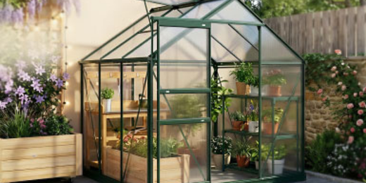 Organizar o cultivo no jardim permite trabalhar com mais conforto e aproveitar melhor o espaço exterior. A estufa cria um ambiente protegido para as plantas, as caixas de plantio facilitam a plantação e a manutenção, e a mesa de cultivo oferece apoio para preparar vasos e manter tudo organizado. Um espaço funcional que torna o cultivo mais simples no dia a dia