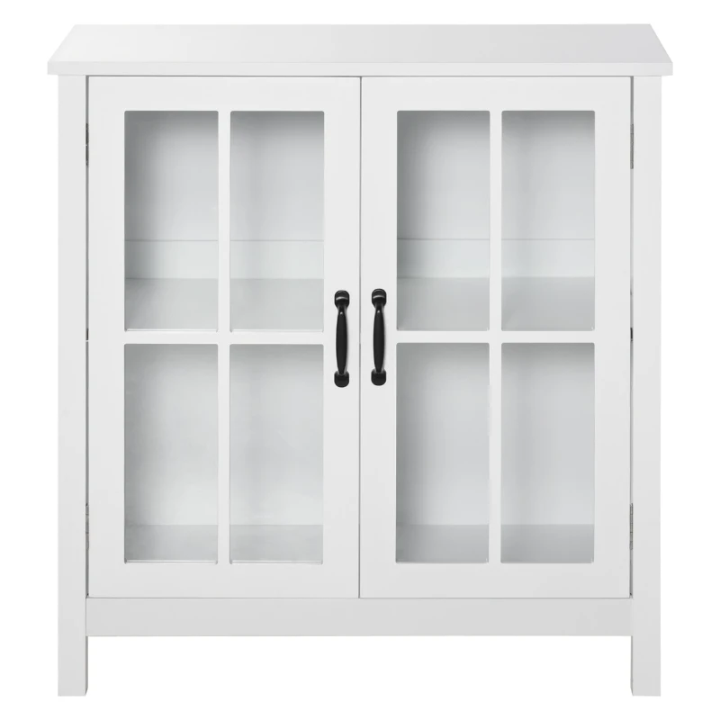 HOMCOM Aparador com 2 portas de vidro temperado Prateleira ajustável Armário multiuso 80x40x85,3 cm Branco