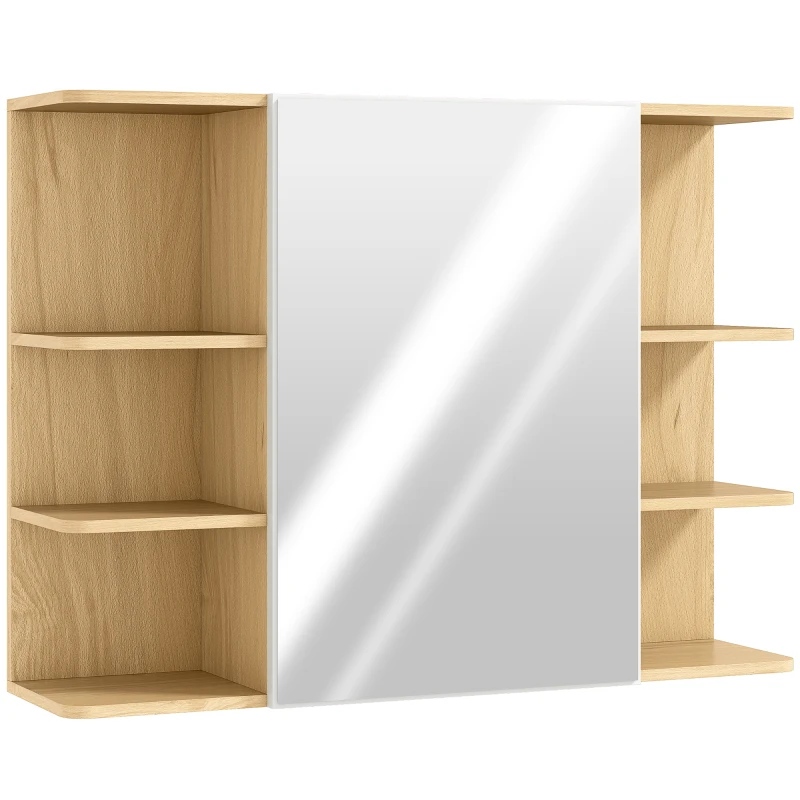 HOMCOM Armário de Casa de Banho com Espelho Armário de Parede Casa de Banho com Porta Prateleiras Abertas 80x20x59 cm Madeira(m-5)