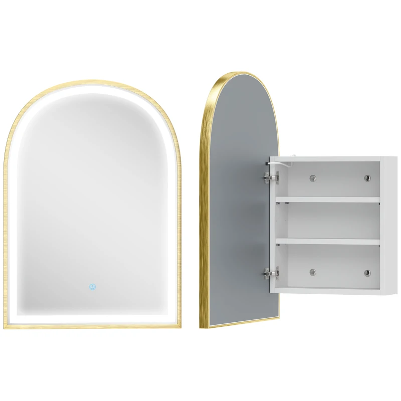 HOMCOM Armário de Parede para Banheiro com Espelho e Iluminação LED Porta Arqueada Antiembaçamento 50x14,5x70 cm Dourado