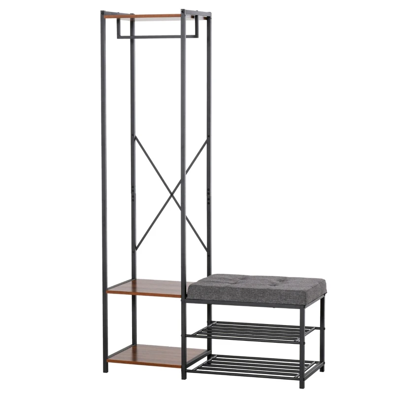 Com este móvel organizador de HOMCOM nunca mais terá que preocupar-se com a desorganização da entrada de sua casa. Composto por um cabideiro com prateleiras e um sapateiro com banco, possui espaço suficiente para 6 pares de sapatos. Para pendurar as jaquetas e casacos quando entra pela porta de sua casa e sentar-se confortavelmente para colocar, tirar ou mudar os sapatos da rua pelos sapatos de andar pela casa. Perfeito para a entrada, mas também pode colocar-lo no corredor ou no dormitório