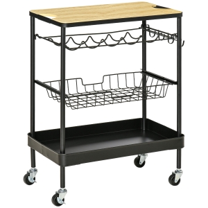 HOMCOM Carrinho de Cozinha com Rodas Carrinho de Armazenamento de 3 Níveis e Rodas com Freios para Casa de Banho Dormitório Escritório 45x31x79,4cm Cinza