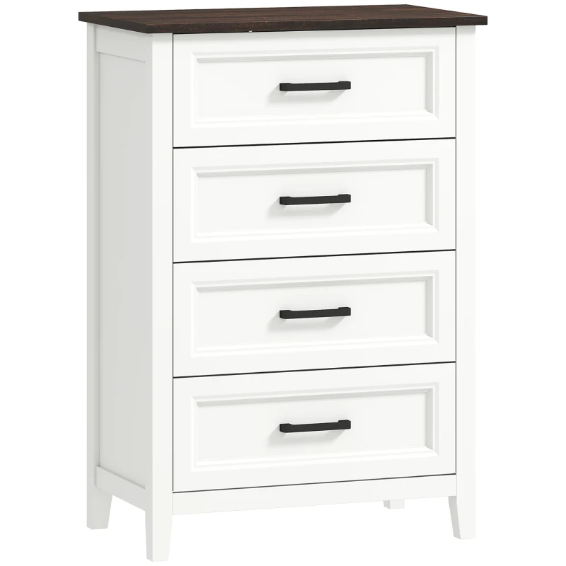 HOMCOM Cómoda 4 Gavetas Cómoda de Dormitório Estreita e Alta com Bancada com Efeito Madeira 60x35x87 cm Branco(m-4)
