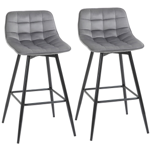 HOMCOM Conjunto de 2 Bancos de Bar Cadeiras Altas com Altura Ajustável e Giratórios com Estrutura de Metal e Apoio para os Pés 41x51x97-117cm Cinza