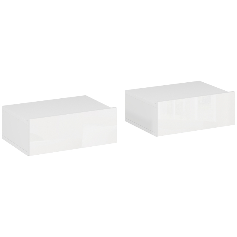 HOMCOM Conjunto de 2 Mesas de Cabeceira com 1 Gaveta Desenho Montado na Parede Estilo Moderno para Dormitório 40x30x15 cm Branco