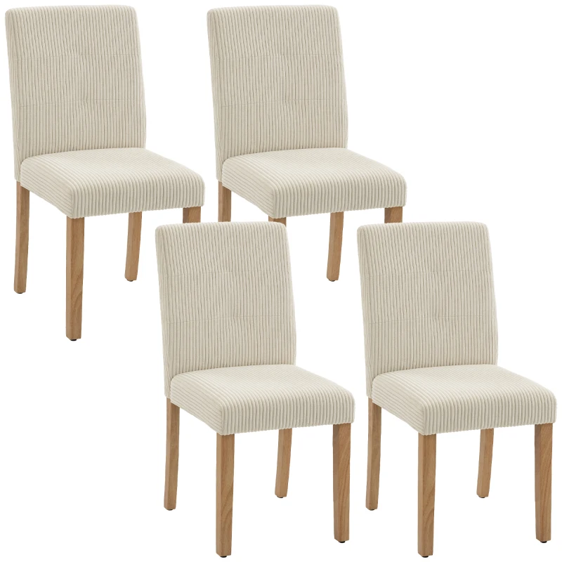 HOMCOM Conjunto de 4 Cadeiras de Jantar Cadeiras Modernas para Cozinha Encosto Alto Estofadas em Veludo Assento Acolchoado 44x56x90 cm Bege