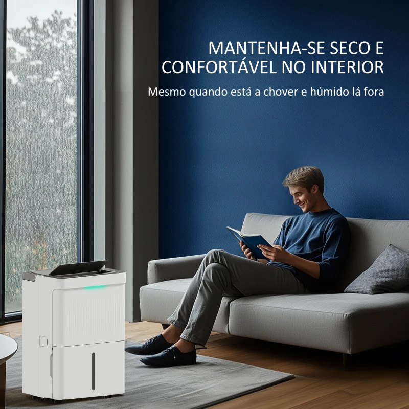 HOMCOM Desumidificador 35L/dia Depósito 5,5L com Ecrã LED Temporizador 24H Bloqueio Infantil até 40-100㎡ 35,5x28x52,2 cm Branco
