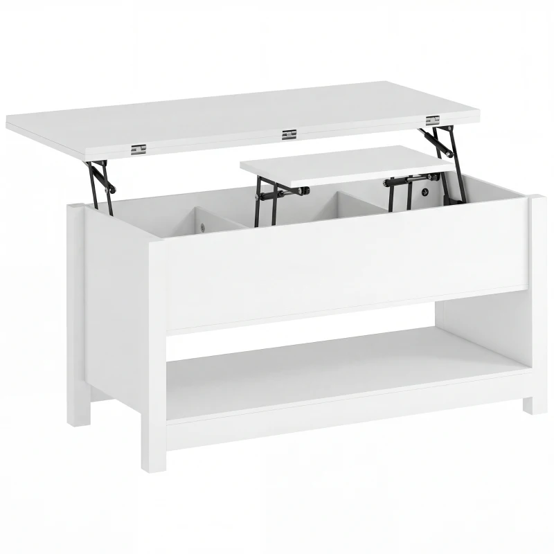 HOMCOM Mesa de Centro Elevatória e Extensível com Compartimentos Ocultos e Prateleira Aberta 100x90x64 cm Branco(m-12)