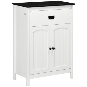 kleankin Móvel Auxiliar Casa de Banho com 1 Gaveta e 2 Portas Armário Casa de Banho de Estilo Moderno 60x30x90cm Branco e Madeira