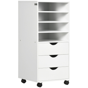 HOMCOM Móvel Auxiliar de Escritório Móvel Arquivador com Rodas Prateleiras Gaveta e Armário Multiuso com Grande Armazenamento 100x35x65cm Branco