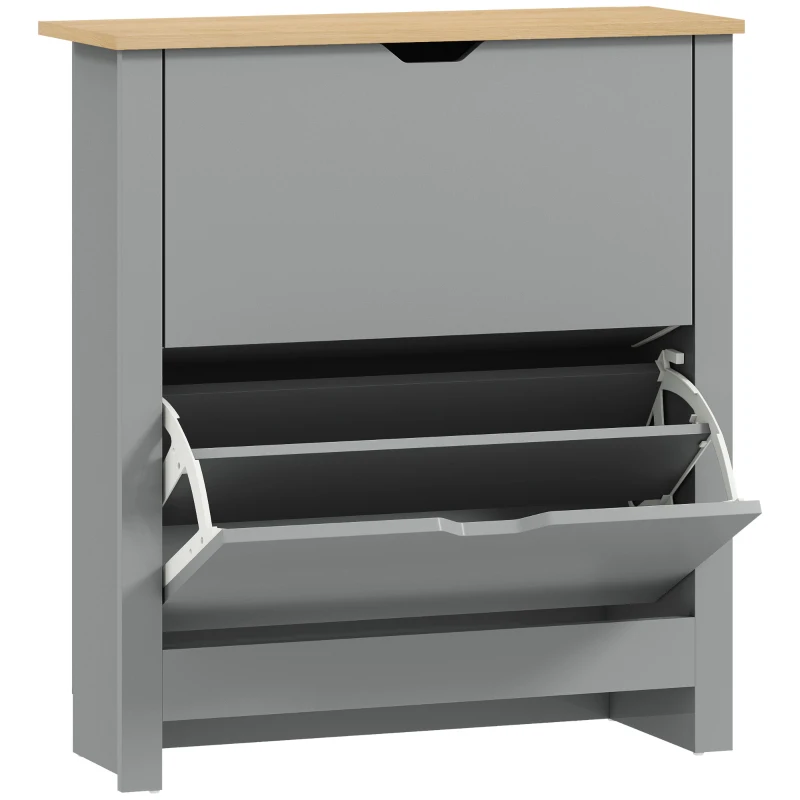 HOMCOM Sapateira 12 pares, armário de sapatos estreito com 2 gavetas basculantes e prateleiras ajustáveis, cinza claro