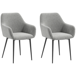 HOMCOM Set 2 Cadeiras de Jantar Nórdicas Estofadas com Braços Curvos em Tecido de Veludo 54x57x80 cm Cinza Escuro