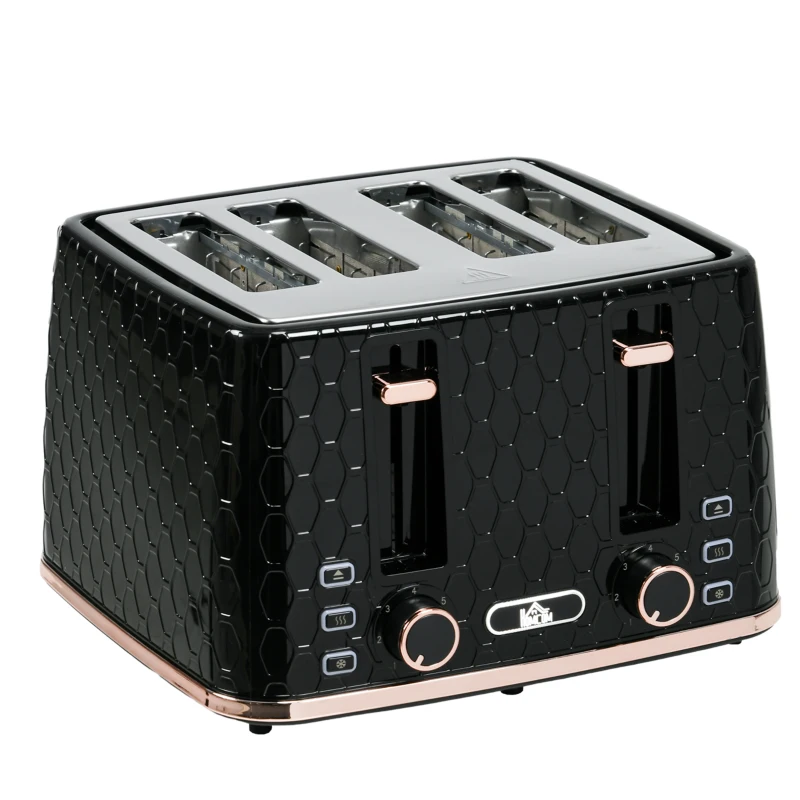 HOMCOM Torradeira 4 Fatias com 7 Níveis de Tostagem Elevação Alta Aquecer Descongelar Cancelar 1860W Preto com Padrão em Colmeia