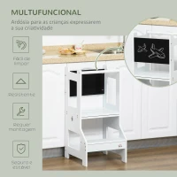 HOMCOM Torre de Aprendizagem para Crianças 3-6 Anos de Madeira Torre de Aprendizagem Infantil Convertível em Secretária com Ardósia e Barra de Segurança para Casa de Banho Cozinha 42x44x86cm Branco
