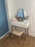 HOMCOM Toucador com Espelho com Luz LED e Banco Conjunto de Mesa de Maquilhagem com 4 Gavetas de Armazenamento para Dormitório 80x40x133cm Branco