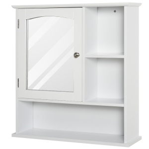 Kleankin Armário Casa de Banho com Espelho Móvel Auxiliar Montado na Parede com Prateleira Aberta e 2 Portas com Prateleira Interior Ajustável 54x15x55cm Branco