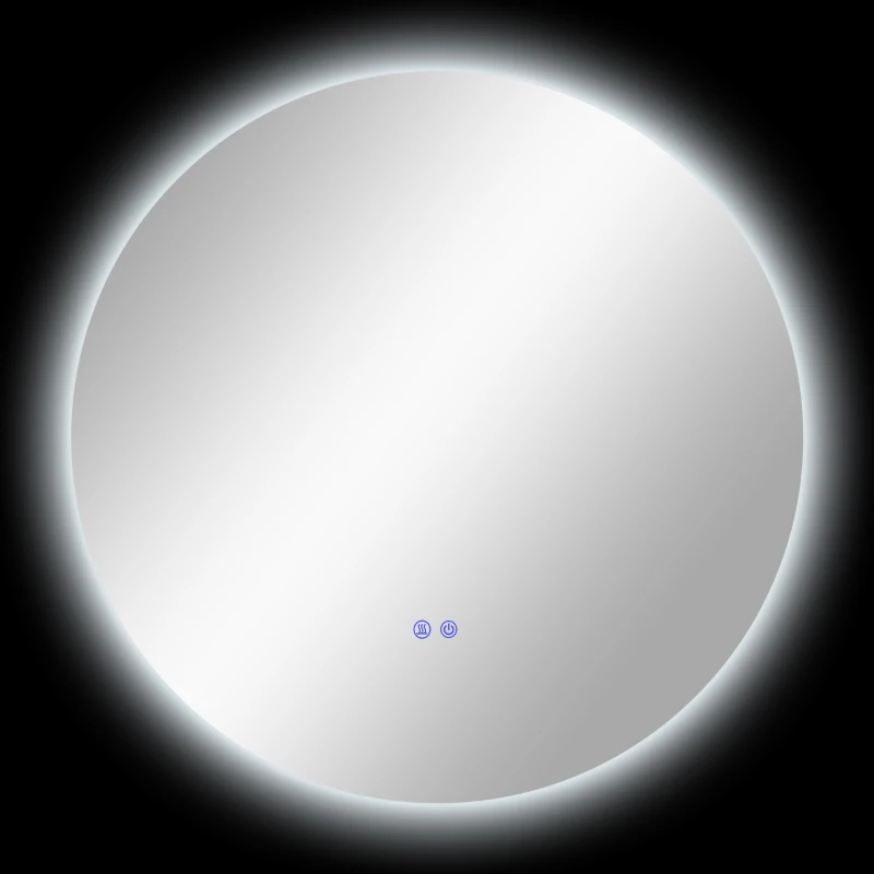 Kleankin Espelho Redondo Luminoso LED de Banheiro Ø 70 cm de Parede Interruptor Tátil de Iluminação Sistema Antineblina 35 W Prateado