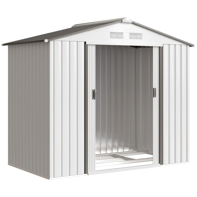 Outsunny Abrigo de Jardim 213x130x185cm Abrigo de Jardim Metálico de Exterior com 2 Portas Deslizantes e 4 Janelas Branco e Cinza