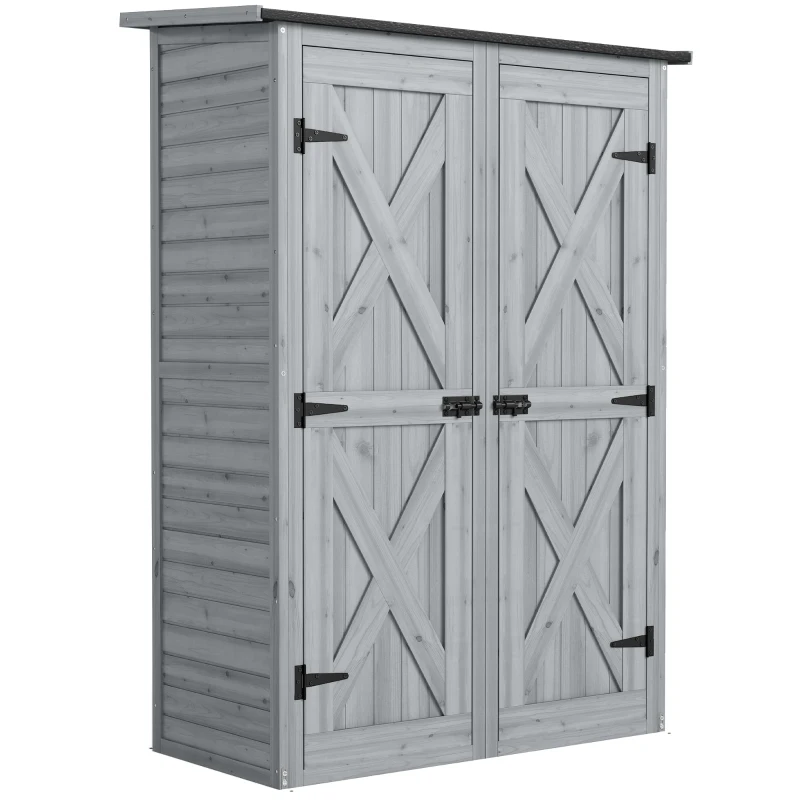 Outsunny Abrigo de Jardim de Madeira 115x53x156 cm Armário Exterior para Ferramentas com Portas Duplas Cinza