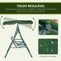 Outsunny Baloiço de Jardim de 3 Lugares com Almofada Toldo Ajustável e Estrutura de Metal 172x110x153cm Verde e Branco