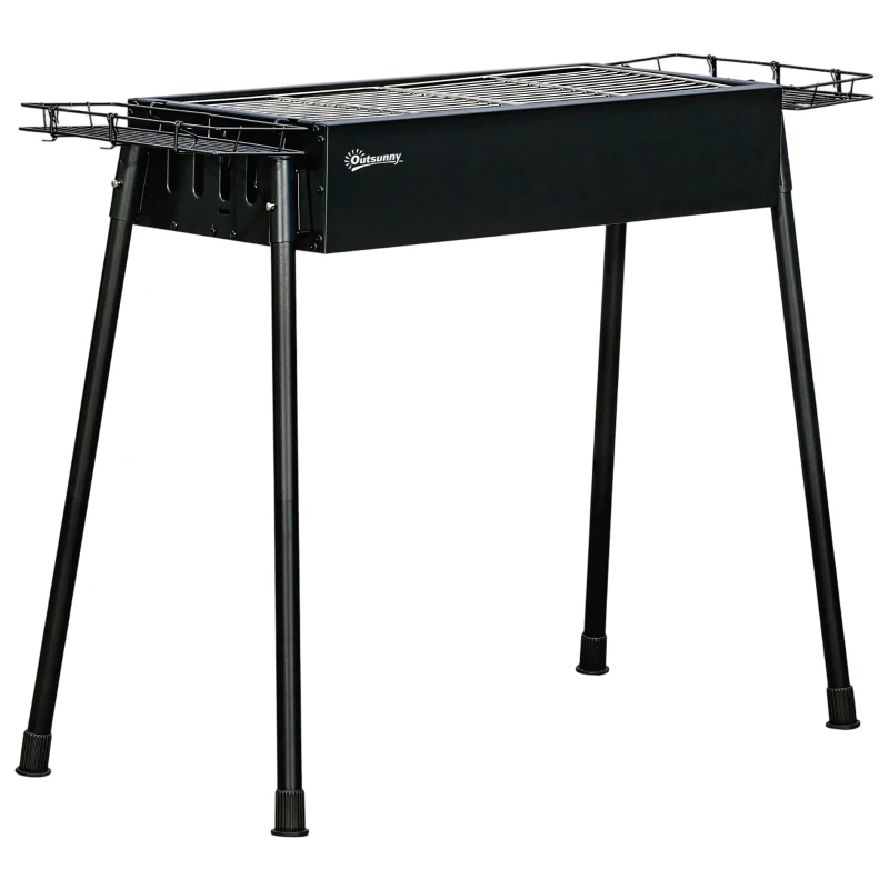 Outsunny Barbecue a Carvão com 2 Grelhas de Aço Inoxidável Portátil com 2 Prateleiras para Temperos com Ganchos 77x30x70 cm Preto
