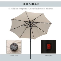 Outsunny Chapéu de Sol de Jardim Ø270x240cm com 24 Luzes LED Solar Mecanismo de Inclinação Manivela e Mastro Desmontável de Metal para Terraço Piscina Pátio Creme