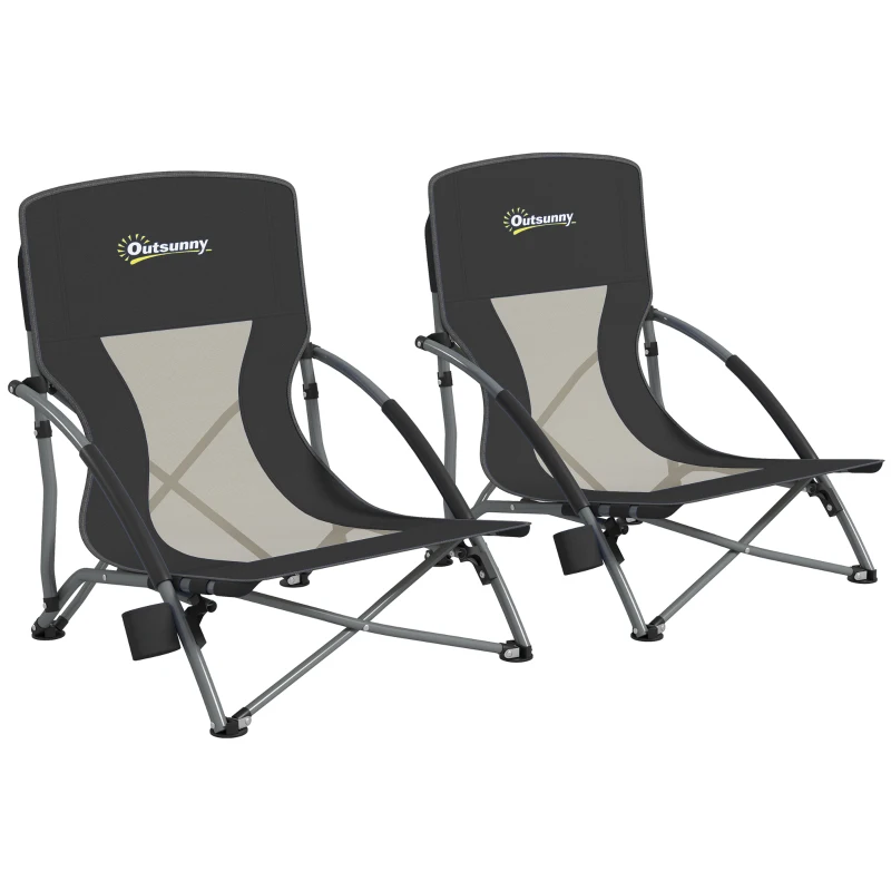 Outsunny Conjunto de 2 Cadeiras de Praia Dobráveis e Leves com Encosto de Malha Apoios de Braços e Bolsa 58x55x62 cm Preto