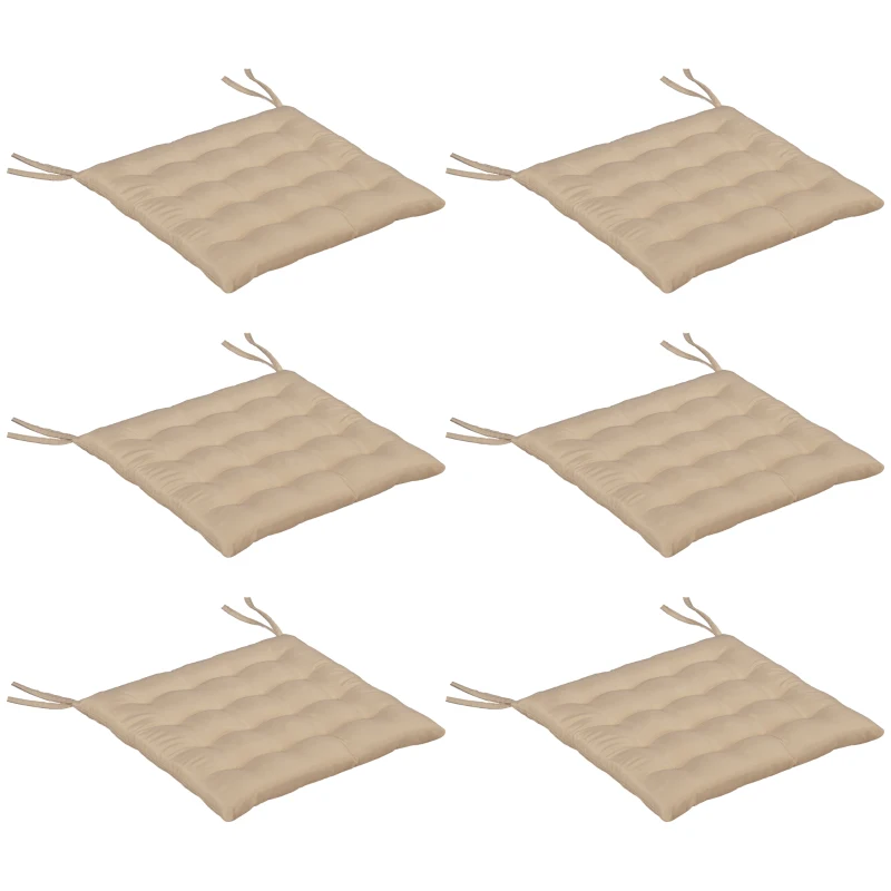 Outsunny Conjunto de 6 Almofadas para Cadeiras de Jantar 40x40 cm 6 peças Almofadas para Cadeiras de Jardim Acolchoadas com Fitas Cáqui