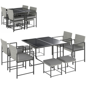 Outsunny Conjunto de Mesa e Cadeiras de Jardim de 6 Peças com 4 Cadeiras Dobráveis Mesa de Vidro e Chapéu de Sol Creme