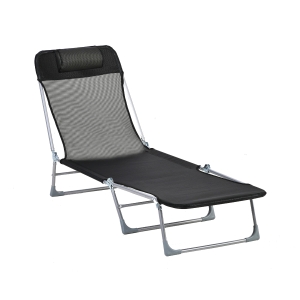 Outsunny Espreguiçadeira dobrável e reclinável de jardim com apoio de cabeça e encosto ajustável em 5 níveis Tecido textilene respirável 182x56x24,5 cm preto