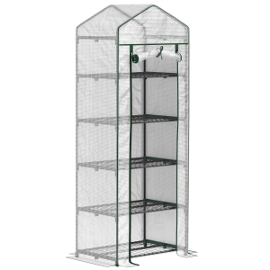 Outsunny Estufa de Jardim com 4 Prateleiras Metálicas Porta Enrolável e Cobertura de PE Estufa de Varanda para Cultivo de Plantas Flores 80x49x160cm Verde
