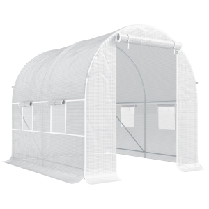 Outsunny Estufa tipo Túnel 445x200x200 cm com Porta Enrolável e 6 Janelas Cobertura de PE 140 g/m² Anti-UV Branco