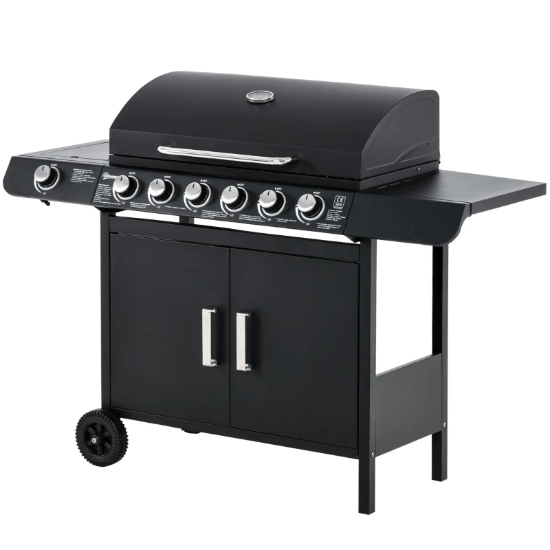 Outsunny Grelhador a Gás com 7 queimadores, incl. termómetro, BBQ-grill, grelhador móvel, Preto