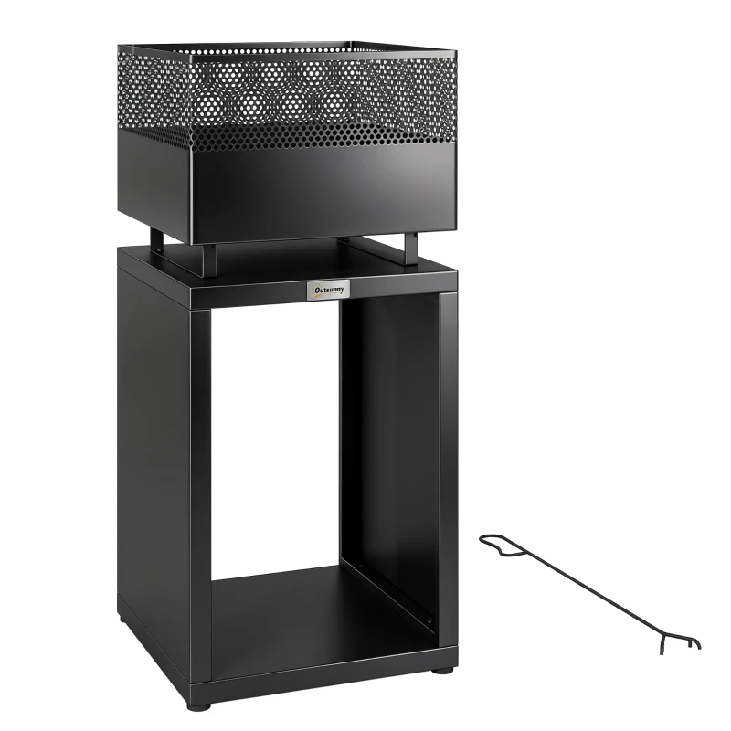 Outsunny Lareira 39 x 39 x 87 cm Lareira com depósito de lenha grelha para carvão pés ajustáveis, Preto
