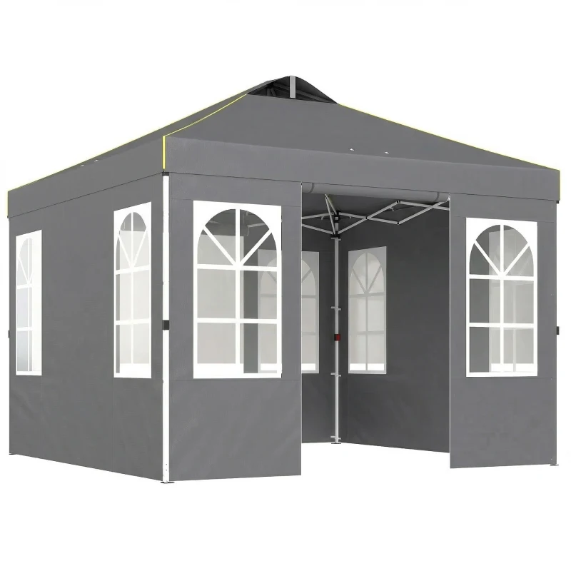 Outsunny Tenda Dobrável 3x3 m Pop-up com UPF50+, 4 Laterais Removíveis, Altura Ajustável e Bolsa de Transporte - Cinzento Escuro