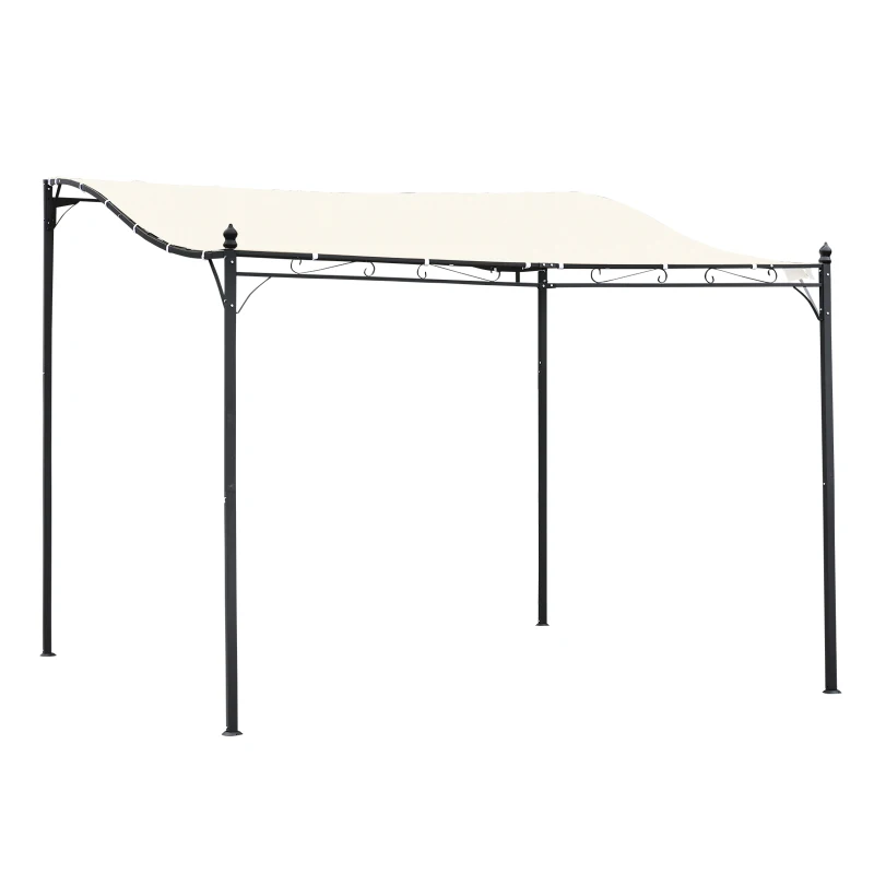 Outsunny Pérgola de Jardim 3x3m Pérgola Montada na Parede com Toldo e 16 Orifícios de Drenagem Metal e Poliéster Creme(m-4)