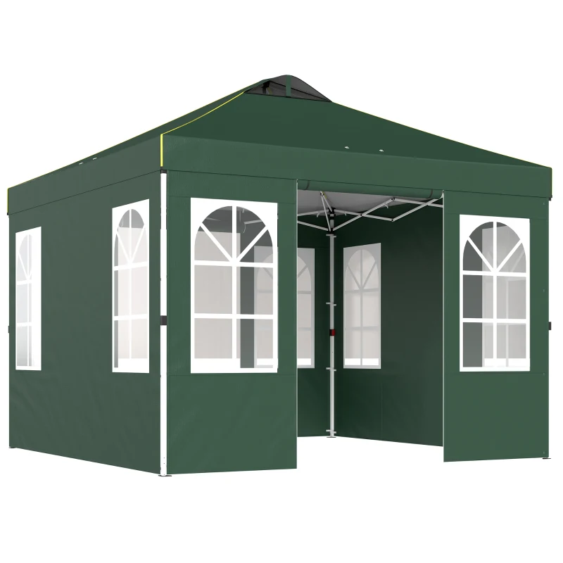 Outsunny Tenda Dobrável 3x3 m Pop-up com UPF50+ 4 Laterais Removíveis Altura Ajustável e Bolsa de Transporte Verde
