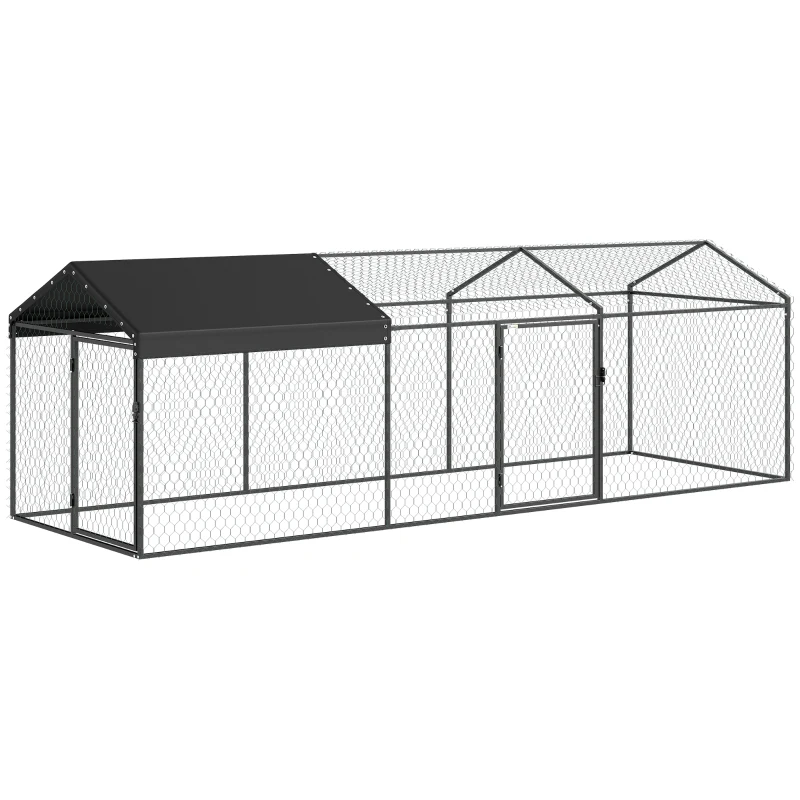 PawHut Galinheiro para Exterior Grande 3x1x1 m Galinheiro Metálico com Cobertura em Tecido Oxford Anti-UV e Impermeável Preto